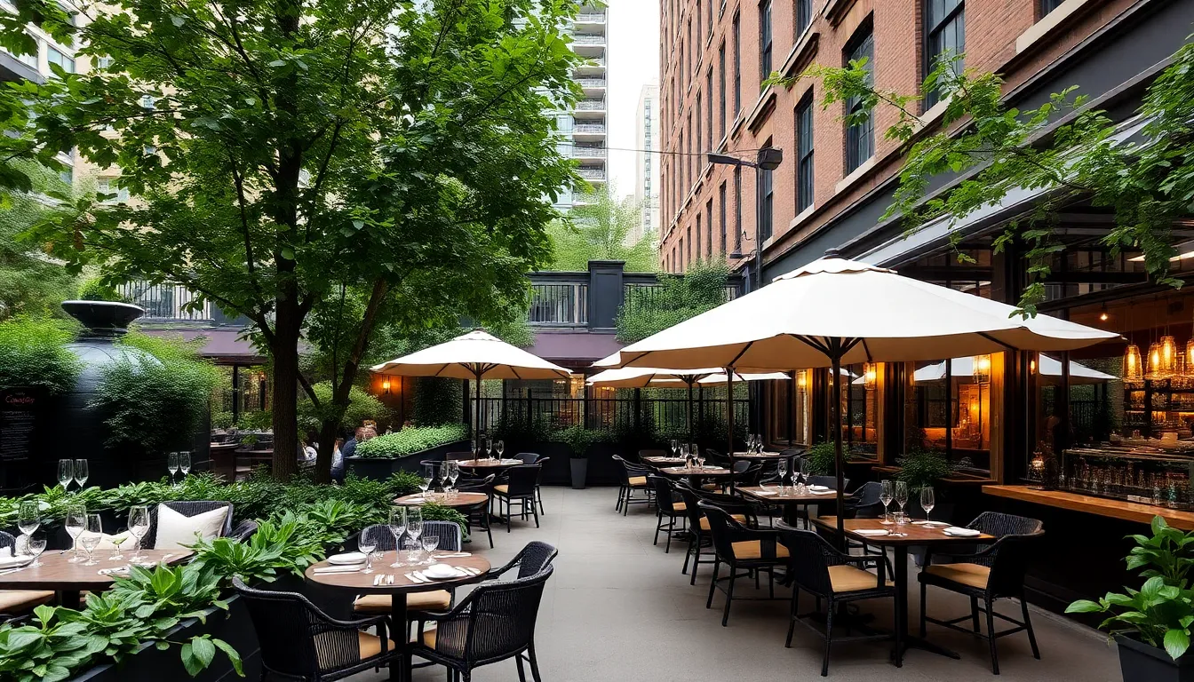 Outdoor seating areas provide a serene escape, allowing guests to enjoy their meals al fresco. Lush landscaping envelops the patio, creating a tranquil setting in the heart of Chicago. Comfortable seating arrangements encourage relaxation while indulging in flavorful dishes. Umbrellas offer shade on sunny days, ensuring a pleasant dining experience. The ambiance transforms in the evening, with soft lighting creating a cozy atmosphere perfect for gatherings. This unique outdoor experience enhances the appeal of Fig & Olive, making it a sought-after destination for both locals and visitors.