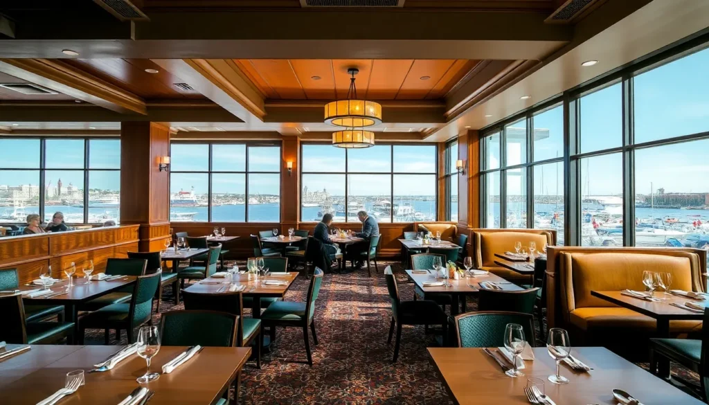 Stylish decor defines the interior, with rich wood accents and elegant lighting creating a cozy environment. The open layout enhances conversations while maintaining an intimate feel. Comfortable seating areas cater to couples and larger groups, balancing privacy with accessibility. Nautical themes subtly integrate with contemporary design, reflecting the seafood-centric menu. Natural light floods in from large windows, allowing views of the vibrant surroundings while dining.